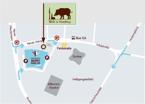 Frisches Wildfleisch nun auch in St. Pauli, vom 24. November bis zum 23. Dezember tägl. ab 12:00 Uhr im Wintergarten vor der Rindermarkthalle (Neuer Kamp 31, 20359 Hamburg).