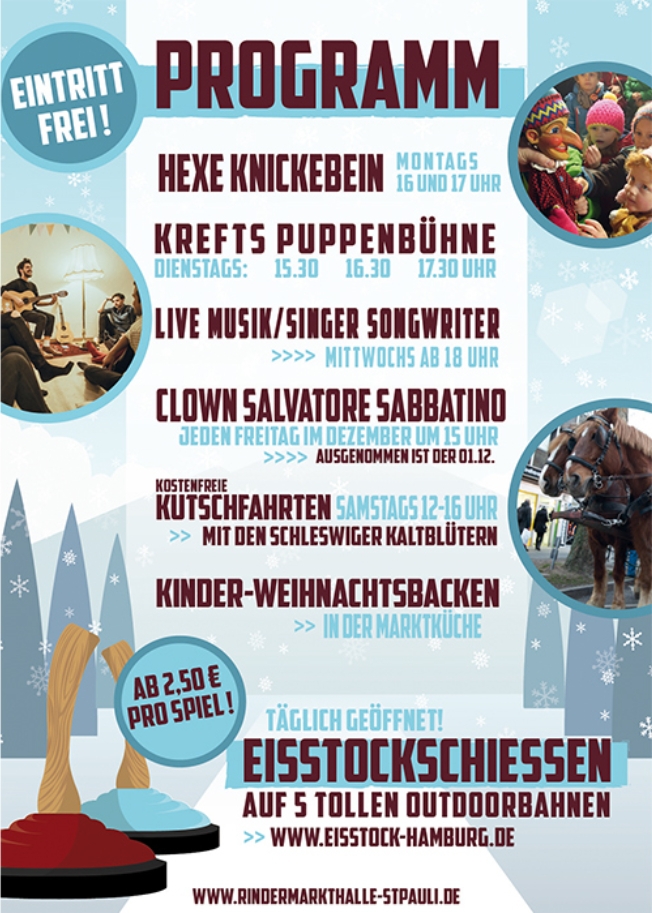 Der Wintergarten St. Pauli ist einer der SEHR kleinen Weihnachtsmärkte. Die Besonderheit ist sicher die Eisstockbahn - immerhin ohne Eis und damit zeimlich umweltfreundlich. Zudem gibt es ein Begleitprogramm mit Musik und Spaß für die Kleinen (siehe Programm unten).
